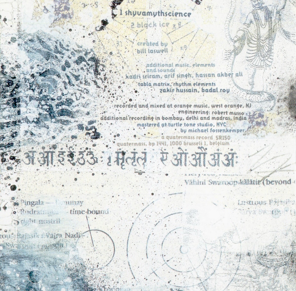 Pattering tabla rhythms merge with determined drum-and-bass stylings in shyvamythscience (23:36), behind which ambient textures swirl like incense smoke. Laswell's beyond-dub basslines wind through the proceedings, without overpowering the delicately hypnotic haze which unfurls like an exotic tapestry to be stitched by thousands of syncopated drumbeats. Rhythmic elements come and go, sometimes dropping out entirely to let the backdrop shine in a gorgeous state of ethnic-influenced ambiance, as in the several-minute-long closing passage.