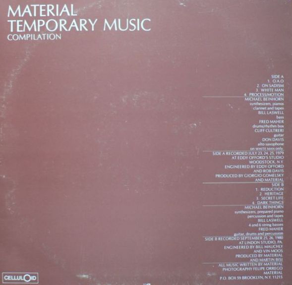 Michael Beinhorn: synthesizers, pianos, clarinet, percussion, tapes; Bill Laswell: